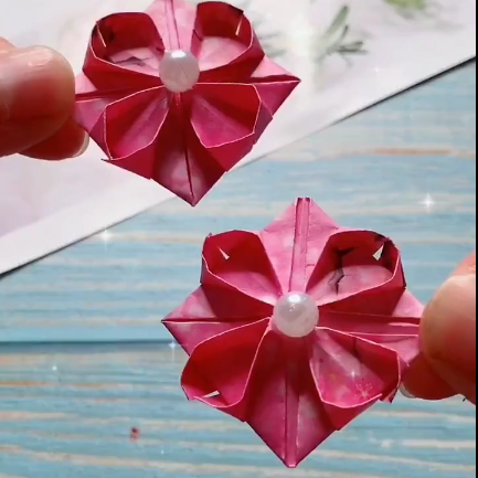 The Process of Creating a Small, Intricate Paper Flower or Star Using Origami Techniques.